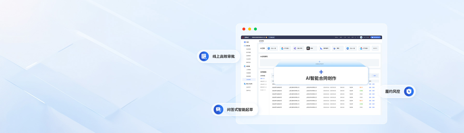 法務(wù)管理系統(tǒng)深度融合AI技術(shù),覆蓋從智能撰寫(xiě)、在線審批、審查校對(duì)、風(fēng)險(xiǎn)預(yù)警至歸檔管理的合同全階段管理,確保流程標(biāo)準(zhǔn)化與數(shù)據(jù)流通無(wú)阻。AI問(wèn)答智能合同生成,極大優(yōu)化了合同起草流程,有效提升工作效率、規(guī)避合同法律風(fēng)險(xiǎn)。以企業(yè)需求為核心,為企業(yè)法務(wù)管理帶來(lái)高效、便捷與安全的全新體驗(yàn)。